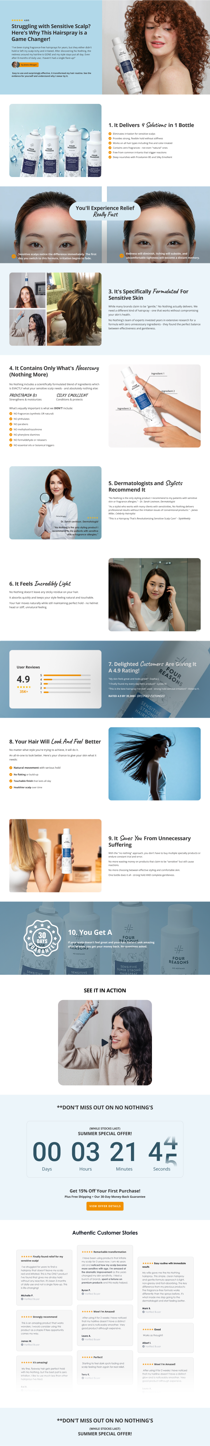 The goal of this project was to design a website for a brand-new hair spray product line specially formulated for sensitive scalps. The mission was to build trust with a health-conscious audience by presenting the product benefits clearly, highlighting its dermatological credentials, and creating a soothing, premium digital experience.